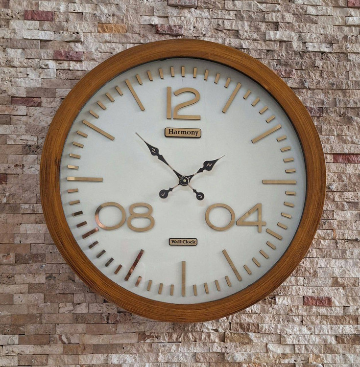 ابعاد این ساعت ۶۰*۶۰سانتیمتر بوده و رنگ این ساعت قهوه ای صفحه سفید میباشد.