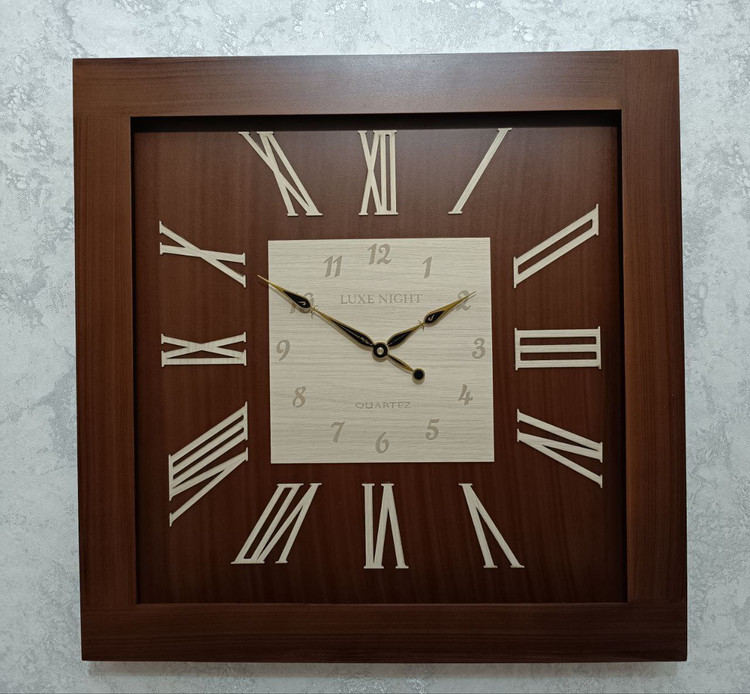 ابعاد و اندازه این ساعت ۶۰*۶۰سانتیمتر بوده و در تک رنگ چوب موجود میباشد.